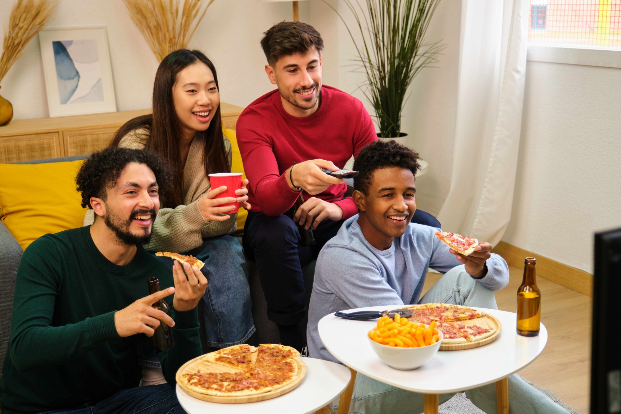 The Super Bowl is typically about 3 to 4 hours long, so you'll want your guests to be able to get comfortable. Floor pillows, ottomans, bean bags, dining chairs and even camping chairs can be used in a pinch, but don't be afraid to ask your guests to BYO seating if you don't have enough in storage. A few throw pillows and blankets will make things extra cozy.