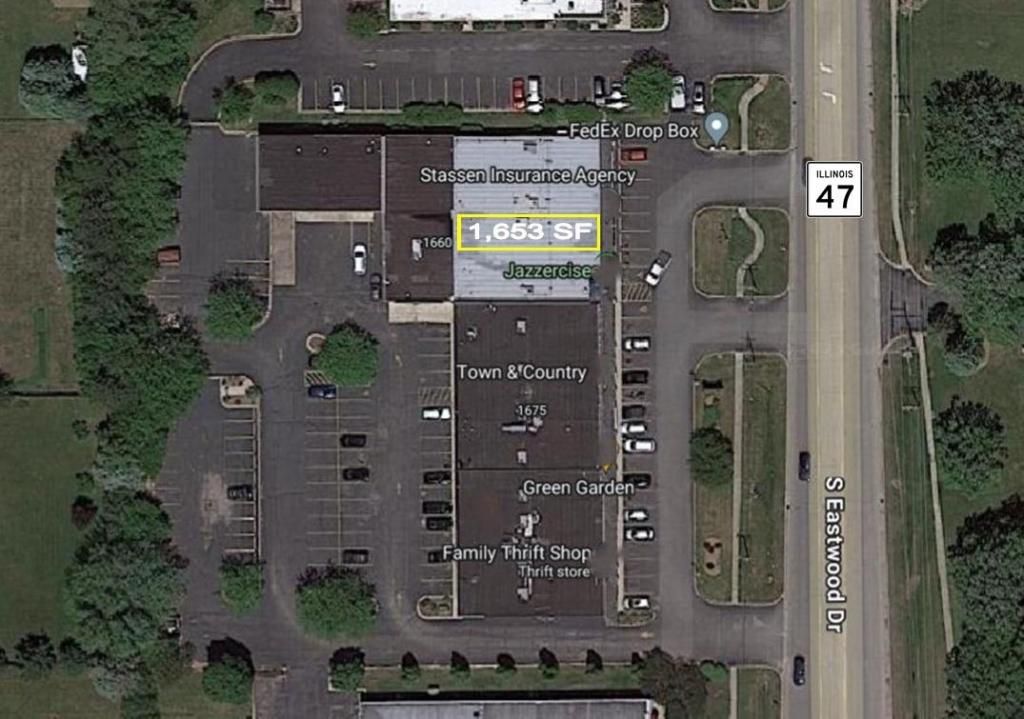 Medical Office Space 1,653 SF Space available in this 25,785 SF Multi-Tenant Strip Center on busy S Eastwood Dr. (Route 47) just North of Northwest Hwy. (Route 14) with over 13,600 vehicles per day and ample, lighted parking in front and rear. UNIT 1664: 1,653 SF medical office with reception desk, 2 exam rooms, 2 procedure rooms, 2 privates offices, utility & storage room. Shared common areas include waiting area, hallway and bathrooms, which are shared with foot and ankle Podiatrist, Dr. Gavin. Utilities are shared. Facade signage with potential of monument signage.