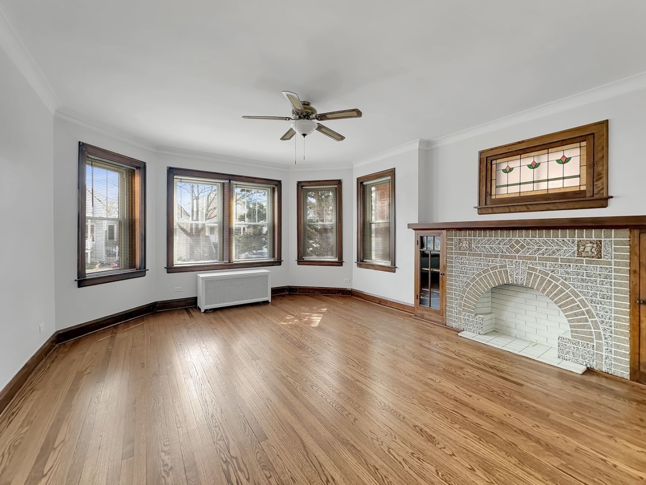 Irving Park residential gem features tree-lined streets and a wonderful walkable neighborhood with immediate access to it all. Unique ultra wide vintage unit in stellar condition boasts full southeast exposure with abundant east and west light. Oversized floorplan with a separate dining room, oversized kitchen and living room with an extra sunroom gives a great space, lives like a home, look at the floorplan! Newly refinished hardwoods, deep moldings, built-ins, and a fireplace. Fabulous private deck and a shared yard. Rent includes heat and water; tenant pays electricity only. Free laundry in basement. One garage parking spot available for $100; street parking is ample. Prime location close to Horner Park, California Park pool/tennis, Target, and Jewel. Convenient to Addison Blue Line and popular dining, including Honey Butter Fried Chicken, Chief O'Neill's, and more! Classic Chicago residential living in a beautiful vintage home.