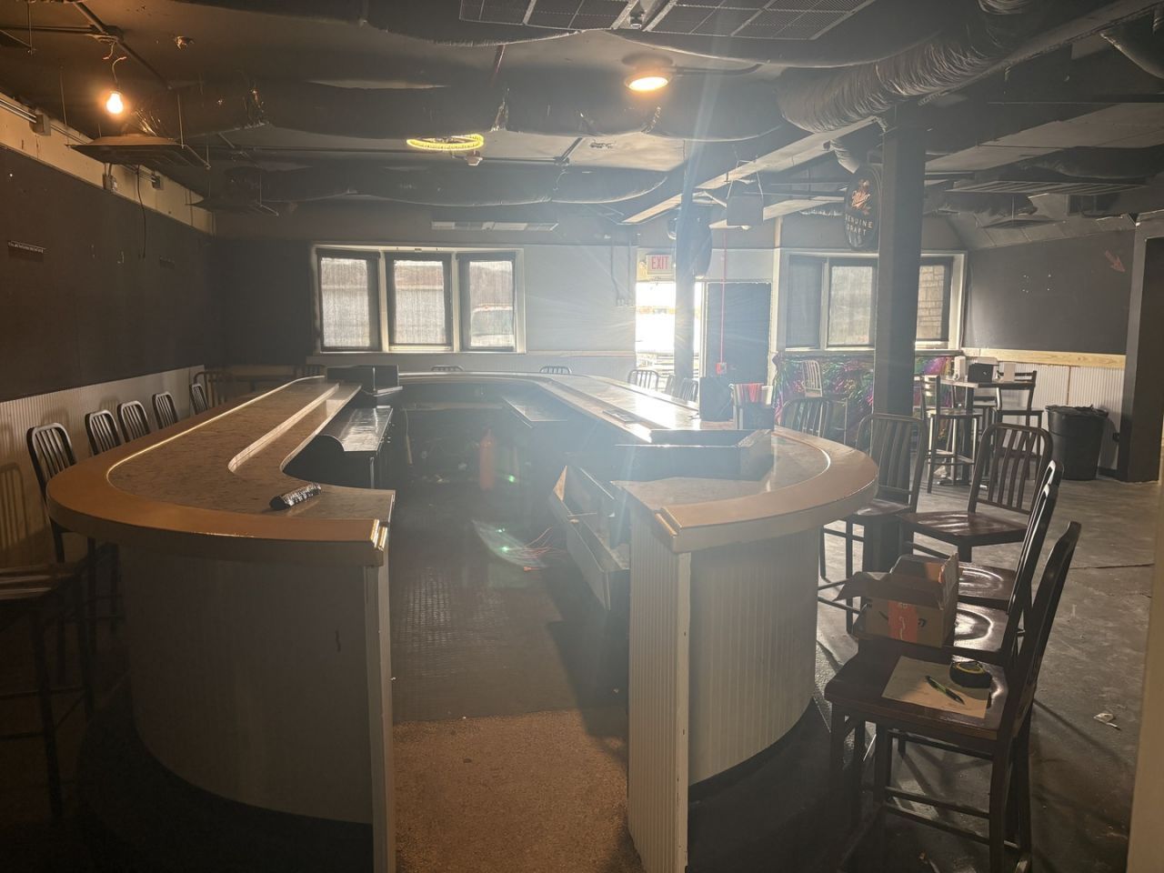 Popular Bar Closed up and Looking for New Owner. Large oval shape bar that seats 25 patrons - 25 barstools included along with an additional 36 stools in the storage area - 4 booth style couches - 5 high top tables with chairs - ice maker - 4 full bathrooms (one with a shower) plus a 10x9 office. This busy bar is vacant and ready for its new owner. The bar is located in a high traffic area on Lake Street just west of Mannheim Road.