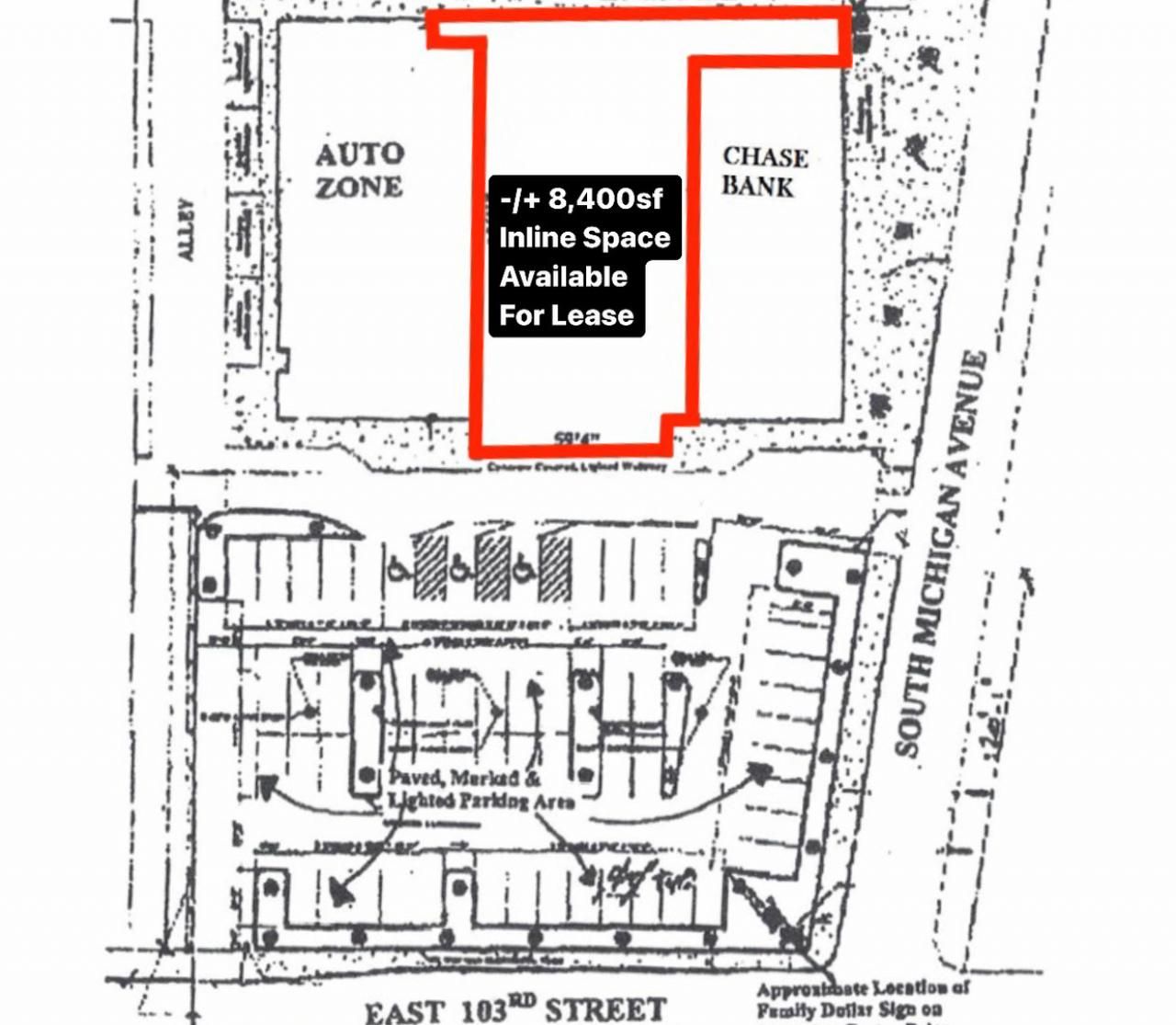 8,406sf of inline space avaialble in this three tenant building. ideal location for large medical user or retailer. The site is located at the northwest corner of 103rd St & Michigan Ave in Chicago's Roseland Community. Walgreens and White Castle are on the opposite corners. The area is densely populated. Traffic counts at this intercsection are approximately 18,000 vehicles per day. High day time traffic and lots of foot traffic in this business and shopping district .Other retailers in the immediate area include Dollar Tree, Church's Chicken, Dunkin Donuts, the Grocery Basket and many Independent retail and service businesses.