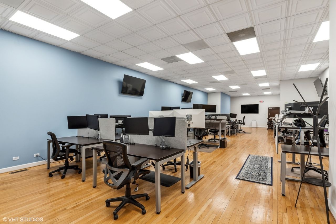 Huge duplex down commercial condo in the heart of River West bordering the exploding West Loop, West Town, and Fulton Market neighborhoods! This beautifully rehabbed unit was updated in 2021 and boasts 2 floors, a well thought out floor plan, and beautiful finishes. The open concept first floor has hardwood floors, dramatic ceiling height, tons of natural light, a snack station, extra storage areas, and a bathroom. The lower level layout was expertly designed with a gathering area, a gorgeous glass enclosed conference room and office, kitchen, bathroom, and hidden server room. Floor to ceiling windows on the first floor allow tons of light to both levels through the large atrium. There's space for 3 parking spots in the rear of the building. The property is located in a highly dense residential and commercial area with strong vehicular traffic counts. Area tenants include My Chicago Golf, Orange Theory, CVS, Dunkin' Donuts, Urban Market, Matchbox, Starbucks, Erie Street Auto Body, and many more. You're only 2 blocks to the Blue Line L stop and access to Kennedy Expressway. This is the perfect space to showcase your business!