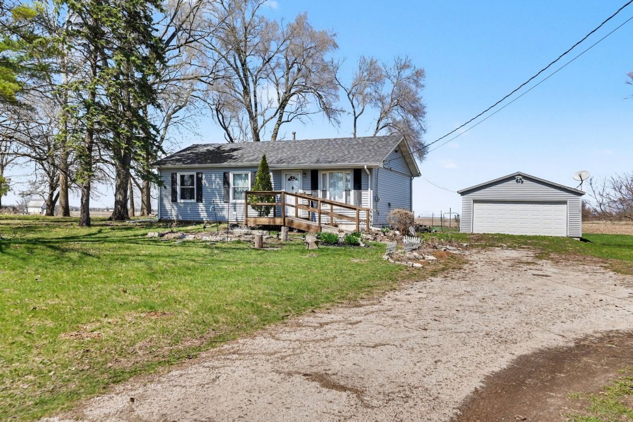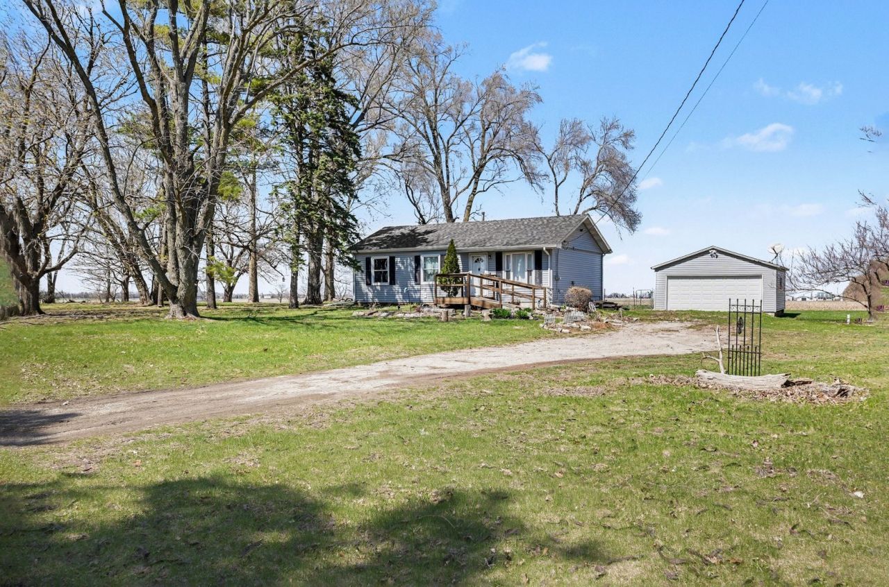 Hard to Find! Peaceful, relaxing, serene!!!You will enjoy this 1+ Acre Tree lined property amidst 1000's of acres of Farmland that has a 3-Bedroom Ranch with a full-Basement and a 2-1/2 Car Garage. From the Front entrance the Living room has an open-Design with a half-wall opening in to the Kitchen-dining area. The Bathroom has a a 5-Ft..walk-in Tile Shower, perfect for todays style of living. All the bedrooms have Hardwood Floors and the Living room has carpet but more than likely has Hardwood underneath. Some rooms have ceiling fans. There is Full-size Basement which is great for storage or future expansion that could have a Family Recreation Rm.,4th Bedroom and finished Bathroom! There is a newer Furnace and Hot-water Heater and a Washer and Dryer. The 2-1/2 Car Garage has an updated garage door. Updates Include: A Newer Roof and Newer Siding Sept.2020, New Windows (except for Living room) Sept.2024, Newer Furnace, October,2024, Hot Water Heater-January, 2025, Updated Well Pump, updated Garage door. The windows have a transferable Warranty. Bring in your design ideas, this home has a lot of possibilities! Only 15-minutes to Grocery Stores, restaurants and Shopping! Don't wait before it is gone!
