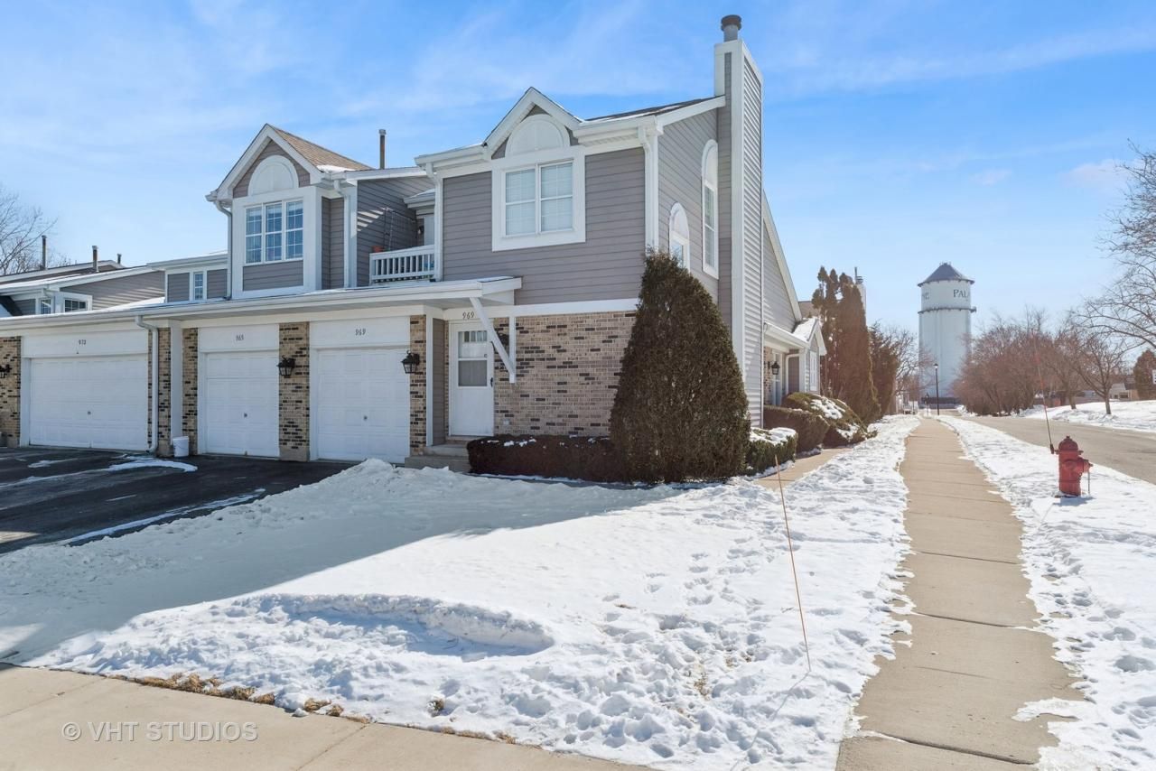 Multiple Offers Received. Move right into this stylishly updated, second-floor END unit in Hidden Cove! Step inside and be greeted by vaulted ceilings, natural light and an inviting, open-concept layout. The spacious living room flows into the dining area where you'll find a new glass sliding door leading to your private balcony overlooking a quiet, treelined cul-de-sac. The modern kitchen is a standout. So much new! Updated cabinetry, deep kitchen sink, sleek backsplash, new tile flooring, and newer appliances-including a high-end GE Cafe refrigerator. Throughout the home, new laminate wood flooring and baseboard trim adds a fresh and contemporary touch. The primary bedroom offers a walk-in closet, charming bay window, and ensuite bath. Both baths have been beautifully updated with new flooring, vanities, toilets and lighting. The second-floor laundry adds convenience. Downstairs, the large unfinished basement provides possibilities-storage, a home gym, playroom, or an additional family room. Fabulous location close to Deer Grove Forest Preserve and downtown Palatine offering great dining, shopping, parks, schools and the Metra. With countless updates throughout, this home is ready for its new homeowners. Schedule your showing today!